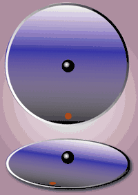 In the inertial frame of reference (upper part of the picture), the black ball moves in a straight line. However, the observer (brown dot) who is standing in the rotating/non-inertial frame of reference (lower part of the picture) sees the object as following a curved path due to the Coriolis or centrifugal forces present in this frame.