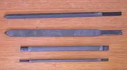 | Mill file | The most common shape, single-cut, rectangular in cross section, with an even thickness throughout their length; they may be either parallel sided or taper slightly in width from heel to end[9] | |