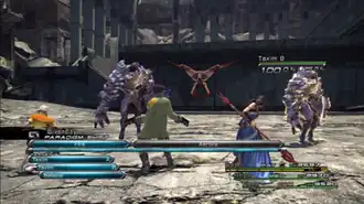 Tsuchida's concept for the battle system was to maintain the strategic nature of command-based battles. The system stemmed from a desire to create battles similar to those found in the film Final Fantasy VII: Advent Children.[64] Magic points (MP), which had been a part of the battle system in previous Final Fantasy titles, were removed in the game's battle system as Tsuchida and the other designers felt that it gave players an incentive to not use their most powerful magic attacks due to the MP cost, in turn making battles less interesting. The Paradigm system was designed early in the battle system's development, with the intent of making battles rely on quickly changing strategies and feel fast-moving. Originally there were only five roles, but the Saboteur was later added as the designers felt that its abilities were missing from the game and did not fit with the other roles. Together with the maximum of three characters in a combat situation, the groupings of enemies were designed to force the player to switch Paradigms to keep them engaged in the battles.[65]