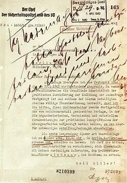 - ^ a b "Wannsee Conference and the Final Solution". United States Holocaust Memorial Museum. Retrieved 30 March 2015.
