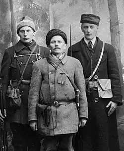 The number of Finnish troops on each side varied from 70,000 to 90,000 and both had around 100,000 rifles, 300–400 machine guns and a few hundred cannons. While the Red Guards consisted mostly of volunteers, with wages paid at the beginning of the war, the White Army consisted predominantly of conscripts with 11,000–15,000 volunteers. The main motives for volunteering were socio-economic factors, such as salary and food, as well as idealism and peer pressure. The Red Guards included 2,600 women, mostly recruited from the industrial centres and cities of southern Finland. Urban and agricultural workers constituted the majority of the Red Guards, whereas land-owning farmers and well-educated people formed the backbone of the White Army.[65] Both armies used child soldiers, mainly between 14 and 17 years of age. The use of juvenile soldiers was not rare in World War I; children of the time were under the absolute authority of adults and were not shielded against exploitation.[66]