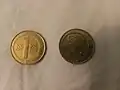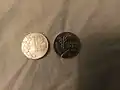 1941–43 18.5 mm Heraldic rose, spruce wreath, central hole and date Denomination, two heraldic roses and a central hole