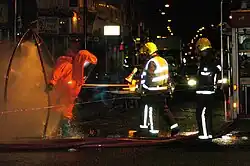 In addition to chemical exposures, firefighters often work 24-hr shifts or longer, and may respond to emergencies at night. Night shift work has been classified as a probable human carcinogen by IARC.[81] Some firefighters also work with hazardous materials and trained to control and clean up these dangerous materials, such as oil spills and chemical accidents. As firefighters combat a fire and clean up hazardous materials, there is a risk of harmful chemicals coming in contact with their skin if it penetrates their personal protective equipment (PPE).[61] In June 2022, IARC classified occupational exposure as a firefighter as "carcinogenic to humans."[82]