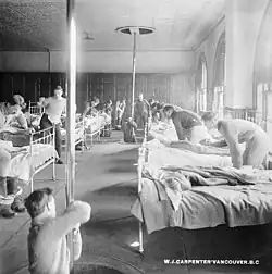 As with other emergency workers, firefighters may witness traumatic scenes during their careers. They are thus more vulnerable than most people to certain mental health issues such as post-traumatic stress disorder[93][94] and suicidal thoughts and behaviors.[95][96] Among women in the US, the occupations with the highest suicide rates are police and firefighters, with a rate of 14.1 per 100 000, according to the National Center for Injury Prevention and Control, CDC.[97] Chronic stress over time attributes to symptoms that affect first responders, such as anxiousness, irritability, nervousness, memory and concentration problems can occur overtime which can lead to anxiety and depression. Mental stress can have long lasting affects on the brain.[98] A 2014 report from the National Fallen Firefighters Foundation found that a fire department is three times more likely to experience a suicide in a given year than a line-of-duty death.[99] Mental stress of the job can lead to substance abuse and alcohol abuse as ways of coping with the stress.[100] The mental stress of fire fighting has many different causes. There are those they see on duty and also what they miss by being on duty. Firefighters schedules fluctuate by district. There are stations where fire fighters work 48 hours on and 48 hours off, whereas some allow 24 hours on and 72 hours off.[101] The mental impact of missing a child's first steps or a ballet recital can take a heavy impact on first responders. There is also the stress of being on opposite shifts as a spouse or being away from family.