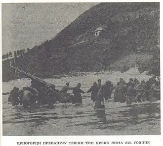 Serbia called upon about 255,000 men, out of a population of 2,912,000, with about 228 heavy guns, grouped in ten infantry divisions, two independent brigades and a cavalry division, under the effective command of the former war minister, Radomir Putnik.[3] The Serbian High Command, in its prewar war games, had concluded that the most likely site for the decisive battle against the Ottoman Vardar Army would be on the Ovče Pole Plateau, ahead of Skopje. Thus, the main forces were formed as three armies for the advance towards Skopje, and a division and an independent brigade were to cooperate with the Montenegrins in the Sanjak of Novi Pazar.