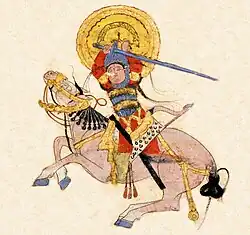 An important figure in the kingdom in the 12th century was Belek Ghazi, grandson of the former Seljuk governor of Jerusalem, Artuk. Belek was to play a small role in this story who, as an Artuqid emir, had hired Baldwin to suppress a revolt in Saruj.[103] When the Muslim leaders of the town approached Balduk to come to their rescue, Balduk hurried to Saruj, but it soon became apparent that his forces were not able to resist a siege and the defenders yielded to Baldwin. Baldwin demanded Balduk's wife and children as hostages, and upon his refusal, Baldwin had him captured and executed. With Saruj, Baldwin now had consolidated the county and ensured his communications with the main body of Crusaders.[95] Kerbogha, ever on guard to defeat the Crusaders, gathered a large army to eliminate Baldwin. During his march towards Antioch, Kerbogha besieged the walls of Edessa for three weeks in May, but could not capture it. This delay played a crucial part in the Crusader victory at Antioch.[104]