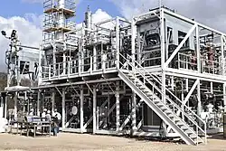 PetroSA, another South African company, operates a refinery with a 36,000 barrels a day plant that completed semi-commercial demonstration in 2011, paving the way to begin commercial preparation. The technology can be used to convert natural gas, biomass or coal into synthetic fuels.[52]