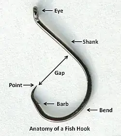 12. ^ "Fishing Hooks 101: Parts, Sizes, Types, and More". Fishing Booker blog. 2021-09-15. Retrieved 2022-09-01.