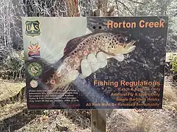 A signboard listing fishing regulations at Horton Creek, Arizona