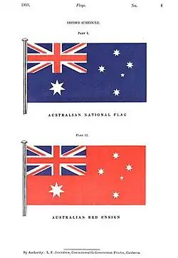 - ^ a b c d e f Commonwealth Document. "Documenting a Democracy". National Archives of Australia: Flags Act 1953: History. Archived from the original on 2 June 2008. Retrieved 18 June 2008.