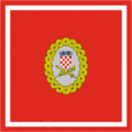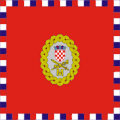 Flag of the Triune Kingdom of Croatia, Slavonia and Dalmatia with the coat of arms, for usage in autonomic affairs. (1868–1918)[4] -