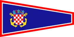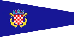 | Design | Three equal horizontal bands of red (top), white and blue superimposed by the emblem of the Croatian Navy. |