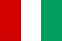 The national flag of Ivory Coast (or Côte d'Ivoire) is a vertical tricolour of orange, white, and green, with a 2:3 width-to-length ratio. It was adopted on 3 December 1959 with the passing of law no. 59-240 by the Ivorian Legislative Assembly, and is defined in Article 48 of the country's 2016 constitution. It is similar to the flag of Ireland, which is the same tricolour but reversed and with wider proportions.