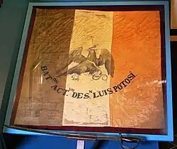 Other flags were flown as Mexican flags, either designed to intimidate the enemy or to act as identification. These flags were considered without subsequent formal documentation as national flag and temporally situated; Flag of Francisco I. Madero (9 February 1913), Flag of Doliente Hidalgo (2 January 1812), Flag of José María Morelos y Pavón, Flag of Francisco Villa, Flag of Siera Battalion, Flag of Jalisco Battalion, Libres de Puebla Battalion, Artillería Mina Battalion, Oaxaca Battalion, Toluca Battalion, Flag of Chihuahua Battalion, Flag of Durango Battalion, Flag of San Lorenzo Battalion, Flag of Lanceros Battalion, Flag of San Luis Potosí Battalion, Flag of Aguascalientes Battalion, Flag of Galeana Battalion (22 May 1864), Flag of San Blas Battalion (24 September 1846), Flag of Tres Villas Battalion, Flag of Milicias Battalion, Flag of Remixto Battalion, Flag of Quautla Battalion, Flag of 201 Squadron, Etc.[36]