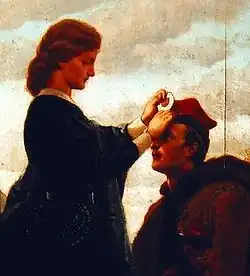 The patriotic and staunchly Catholic members of the Bar Confederation of 1768–1772 adopted crimson – the symbol of Polish szlachta, or nobility – and blue – symbolizing Virgin Mary – as their colours. These, as well as white-and-red, were considered national colours during the Great Sejm of 1788–1792. White and red were first publicly used as national colours by civilians on 3 May 1792 in Warsaw, during a celebration of the first anniversary of the adoption of the Constitution of 1791. Meanwhile, the political left wore the blue-white-red cockades of the French Revolution. Polish Legions created in 1797 in French-controlled republics in Italy, used either national cockades of the particular Italian republics in which they served or the French tricolour cockade. In the latter case, the red and blue colours were replaced with crimson and navy blue respectively, hues considered to be traditionally Polish. The General Confederation of the Kingdom of Poland, which sought to revive the Polish-Lithuanian Commonwealth during the French invasion of Russia in 1812, adopted red-and-blue cockades, symbolizing the unity of Poland (red) and Lithuania (blue).[14] The military of the French-controlled Duchy of Warsaw (1807–1815) and the Russian-controlled Congress Kingdom of Poland (1815–1831) used the white cockade, which was also worn by the cadets who started the November Uprising against Russian rule on 29 November 1830.[13]
