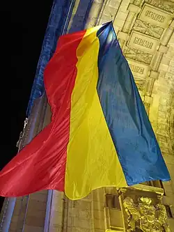 The Communist flag would officially be replaced in the immediate wake of the Revolution, on 27 December 1989, by the National Salvation Front with the 1867 version of the simple tricolor, which remains in use today.[32]