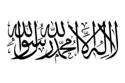| Design | The Shahada in black on a white field in the calligraphic Thuluth script |
