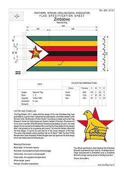 - ^ The Flag of Zimbabwe, Published by the Ministry of Information and Tourism, P.O. Box 8232, Causeway, Zimbabwe, April 1980