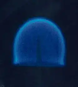 In the year 2000, experiments by NASA confirmed that gravity plays an indirect role in flame formation and composition.[15] The common distribution of a flame under normal gravity conditions depends on convection, as soot tends to rise to the top of a flame (such as in a candle in normal gravity conditions), making it yellow. In microgravity or zero gravity environment, such as in orbit, natural convection no longer occurs and the flame becomes spherical, with a tendency to become bluer and more efficient. There are several possible explanations for this difference, of which the most likely is the hypothesis that the temperature is sufficiently evenly distributed that soot is not formed and complete combustion occurs.[16] Experiments by NASA reveal that diffusion flames in microgravity allow more soot to be completely oxidized after they are produced than do diffusion flames on Earth, because of a series of mechanisms that behave differently in microgravity when compared to normal gravity conditions.[17] These discoveries have potential applications in applied science and private industry, especially concerning fuel efficiency.