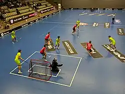 The game was invented in Sweden in the late 1960s.[1] The basic rules were established in 1979 when the first floorball club in the world, Sala IBK, from Sala, was founded in Sweden.[2] Official rules for matches were first written down in 1981.[3]