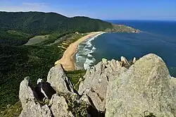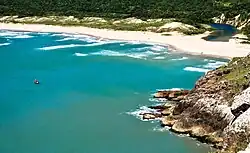 The municipality contains part of the 17,104-hectare (42,260-acre) offshore Marinha do Arvoredo Biological Reserve, a fully protected conservation unit established in 1990.[14] It also contains part of the 84,130-hectare (207,900-acre) Serra do Tabuleiro State Park, a mountainous area covered in lush forests. The park protects the sources of the Vargem do Braço, Cubatão, and Una rivers, which supply most of the drinking water for greater Florianópolis and the south coast region.[15] The municipality contains the 1,532-hectare (3,790-acre) Rio Vermelho State Park in the northeast of Santa Catarina Island, created in 2007.[16]