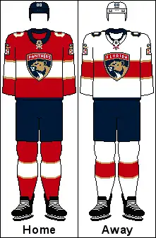 In 1998, the Panthers debuted an alternate navy uniform, with the front crest depicting the leaping panther holding a pair of broken hockey sticks. Prior to the 2003–04 season, the navy uniform became the primary home uniform while the red uniform was relegated to alternate status. The crests on both uniforms were also switched.[73]