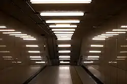 Linear fluorescent lamps illuminating a pedestrian tunnel