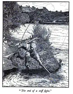 In the late 19th century, American anglers, such as Theodore Gordon in the Catskill Mountains of New York, began using fly tackle to fish the region's brook trout-rich streams such as the Beaverkill and Willowemoc Creek. Many of these early American fly anglers also developed new fly patterns and wrote extensively about their sport, increasing the popularity of fly fishing in the region and in the United States as a whole.[29] Albert Bigelow Paine, a New England author, wrote about fly fishing in The Tent Dwellers, a book about a three-week trip he and a friend took to central Nova Scotia in 1908.