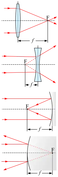 For a thick lens (one which has a non-negligible thickness), or an imaging system consisting of several lenses or mirrors (e.g. a photographic lens or a telescope), there are several related concepts that are referred to as focal lengths: