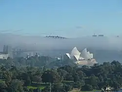 Advection fog over Sydney Harbour and the Sydney Opera House, Australia