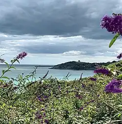 The area of Folkestone has been occupied since at least the Mesolithic era. In 2010, worked flints were discovered below the remains of the Folkestone Roman Villa.[2] The East Cliff area was excavated in 1924 and most recently from 2010 to 2011, producing artefacts from the Mesolithic period through to the Roman era. On the East Cliff, an extensive Iron Age oppidum existed, which produced quern-stones on an almost industrial scale.[3] Those quern-stones, which were used for grinding cereals into flour, were traded for continental exports such as pottery and wine. A modest Roman-style villa was constructed over the Iron Age settlement some time during the 1st century AD, followed by a more luxurious one in about 200 AD. The villa was abandoned during the 3rd or 4th century for unknown reasons.