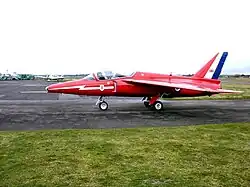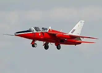 Following the introduction of the Hawker Siddeley Hawk into the training role as a replacement the Gnats were withdrawn from service.[8] The largest operator 4 FTS retired its last Gnat in November 1978. Most of the retired Gnats were delivered to No. 1 School of Technical Training at RAF Halton and other training establishments to be used as ground training airframes. When the RAF had no need for the Gnats as training airframes they were sold off. Many were bought by private operators and some are still flying today.[45] The final RAF operator of the Gnat was the Red Arrows, which retained their aircraft through the 1979 display season.[46] The team received its first Hawk in August 1979 and converted fully from the Gnat for the 1980 display season.[47]