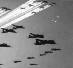 - 13 October 1944: An RAF crew from No.178 Squadron based in Italy reported seeing lights following their aircraft over Hungary during a night raid on Székesfehérvár. A B-24 Liberator KH103 flown by Pilot Officer Taylor was followed by an intermittent red light for several minutes.[22] The squadron had started reporting numerous similar instances as early as April 1944 and would continue doing so throughout the remainder of 1944 and into 1945.[23]