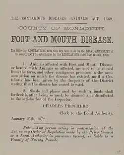 FMD notice; Monmouthshire, Wales, 1872