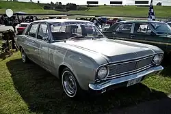The XR series was initially offered in nine different models: Falcon, Falcon 500, and Fairmont sedans, Falcon, Falcon 500, and Fairmont wagons, Falcon and Falcon 500 utilities, and the Falcon Van.[11] The new wagons shared the 111-inch (2,800 mm) wheelbase with the XR sedans, unlike the 1966 US Falcon wagons which featured a 115-inch (2,900 mm) wheelbase.[12] The Falcon 500 replaced the Falcon Deluxe of the XP series[12] and the two-door hardtop body style available in the XP series was not offered in the XR range.[7] Ford New Zealand, which assembled the Falcon 500 at its Seaview, Lower Hutt, plant near Wellington, introduced a short-lived Falcon 600 model into the XR and subsequent XT ranges, with additional equipment such as a heater standard. The Fairmont and GT models were not locally assembled, but were imported from Australia in limited numbers.