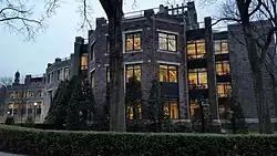 There are eleven residence halls on campus, including Queen's Court residential college, whose main mission is to "assist in the integration of first-year students into University life,"[95] and nine Integrated Learning Communities that each cater to a particular year (freshman, sophomore, etc.) or area of study (science, leadership, etc.).[96] In addition, the campus contains two residences for Jesuits, a retirement home, and the Murray-Weigel infirmary.[97]