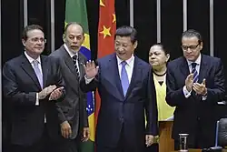 As the Trump administration in the United States opened a trade and tariff war with China in 2017, China's response has been to set up its own multinational trading arrangements. In late March 2019, Xi Jinping moved forward with major trading deals with France and Italy. French President Emmanuel Macron and Xi Jinping signed a series of large-scale trade agreements that cover many sectors over a period of years. The centerpiece was a €30 billion purchase of airplanes from Airbus. The new trade agreement also covered French exports of chicken, a French-built offshore wind farm in China, and a Franco-Chinese cooperation fund, as well as co-financing between BNP Paribas and the Bank of China. Other plans include billions of euros to be spent on modernizing Chinese factories, as well as new ship building.[45] The same week Xi Jinping signed an infrastructure plan with Italian Prime Minister Giuseppe Conte. Italy became the first European power to join the Belt and Road Initiative.[46]
