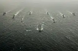 Beyond its immediate neighbors, Japan has pursued a more active foreign policy in recent years, recognizing the responsibility which accompanies its economic strength.[3] Japanese Prime Minister Yasuo Fukuda stressed a changing direction in a policy speech to the National Diet: "Japan aspires to become a hub of human resource development as well as for research and intellectual contribution to further promote cooperation in the field of peace-building."[4] This follows the modest success of a Japanese-conceived peace plan which became the foundation for nationwide elections in Cambodia in 1998.[3]