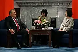 As international recognition of the ROC continues to dwindle concurrently with the PRC's rise as a great power, ROC foreign policy has changed into a more realistic position of actively seeking dual recognition with the PRC.[8] For consistency with the one China policy, many international organizations that the ROC participates in use alternative names, including "Chinese Taipei" at FIFA and the International Olympic Committee (IOC), among others.[9]