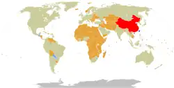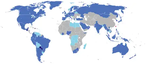 Since the 1970s, the PRC and ROC have competed for diplomatic recognition from nations across the world, often by offering financial aid to poorer countries as an inducement.[70][71] As a precondition for diplomatic relations, the PRC requires that the other country renounce any recognition of the ROC. Since the introduction of the "pragmatic diplomacy" (務實外交; Wùshí wàijiāo) policy in 1991, the ROC has not insisted on consideration as the sole representative of China, and does not require nations that recognize it to end their relations with the PRC.[72] For example, when Saint Lucia chose to recognize the ROC in 2007, Foreign Minister Rufus Bousquet said the decision "should not be construed as a severance of our relationship with the PRC".[73] However, the PRC responds to foreign recognitions of the ROC by suspending relations with the other country.[72]