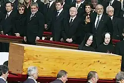 President Chen Shui-bian (far left) attended the funeral of Pope John Paul II, and as the Holy See's recognised head of state of China, was seated in the first row in alphabetical order beside the first lady and president of Brazil.