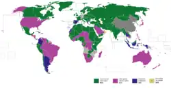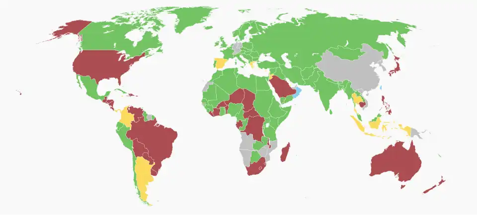 Green = In favour, Red = Against, Blue = Abstention, Yellow = Non-voting, Grey = Non-UN-members or dependencies.[69]