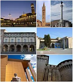The city is situated along the Via Emilia, to the east of the Montone river, and is an important agricultural centre.[3] The city hosts some of Italy's culturally and artistically significant landmarks; it is also notable as the birthplace of painters Melozzo da Forlì and Marco Palmezzano, humanist historian Flavio Biondo, physicians Geronimo Mercuriali and Giovanni Battista Morgagni. The University Campus of Forlì (part of the University of Bologna) is specialized in Economics, Engineering, Medicine, Political Sciences as well as the Advanced school of Modern Languages for Interpreters and Translators (SSLMIT).
