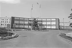 96 inmates rioted in the prison dining room on January 19, 1955, led by 12 ringleaders who barricaded themselves in the prison's bakery.[25] The riot started only 24 hours after the chief guard and two other guards were dismissed.[25] Dishes and furniture were thrown and smashed, and a store room in the bakery was destroyed by fire after the ringleaders torched clothing, boots, and other supplies that they found.[25] Prisoners in a cell block believed to contain rioters shouted phrases such as "get the story straight" to nearby reporters.[25] They claimed that they rioted because of the food at the jail.[25] The fire was doused by the local fire department, and the riot was put down by 50 Royal Canadian Mounted Police officers from Edmonton, who were armed with tear gas and smoke grenades.[25] After the ringleaders were pulled from the bakery, they were returned to their cells.[25] The prison had previously seen an inmate sit-down in October 1950, and a small disturbance in March 1949, but this was the most significant act of aggression by inmates that the prison had seen.[25] The riot caused $10,000 worth of damage.[25]