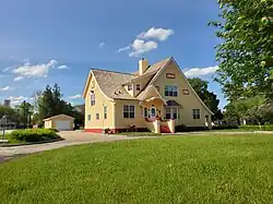The Canadian Northern Railway (CNR) reached Fort Saskatchewan in 1905, placing the town on what would eventually become a transcontinental rail line.[10] The CNR station is a modified third-class station design (100-19 plan); a "special station" that was used by CNR at the most significant stops along their line.[13] It has several unique features, such as a longer footprint than other third-class stations, and a freight shed; these reflected Fort Saskatchewan's status as the centre of an agricultural district and the largest community on the CNR line between Edmonton and North Battleford, Saskatchewan.[13][14] A second freight shed was built on the west side of the station in 1911; a sign of the growth in population and rail traffic that Fort Saskatchewan experienced.[13] The station is the only surviving model 100-19 railway station in Alberta.[13] In the decade after the railway arrived, the town's population nearly doubled to 993.[10]