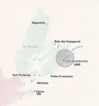 - ^ A.J.B Johnston. "From Port de peche to ville fortifiee: The Evolution of Urban Louisbourg 1713–1858" in Aspects of Louisbourg. The University College of Cape Breton Press, Sydney, Nova Scotia 1995, page 4