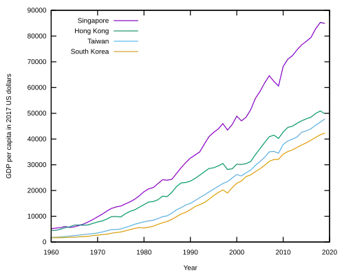 ![]() The Four Asian Tigers, from north to south: South Korea, Taiwan, Hong Kong and Singapore | |||||||||||||||||||||||||||||