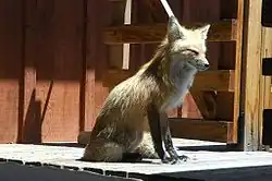 In the case of domesticated foxes, the whining seems to remain in adult individuals as a sign of excitement and submission in the presence of their owners.[2]