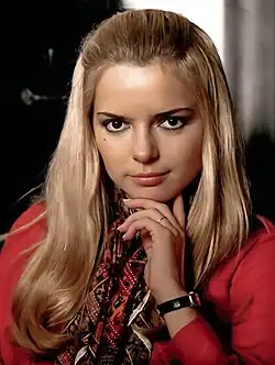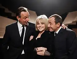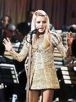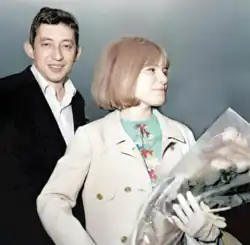 She soon began performing live, making her debut as the opening act for Sacha Distel in Belgium.[3] Through her work with songwriters including Gainsbourg, Alain Goraguer, and Jacques Datin, she developed a diverse repertoire navigating between jazz, children's songs and other genres.[1] Her collaboration with Gainsbourg continued to yield popular singles, including the 1964 hit "Laisse tomber les filles".