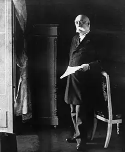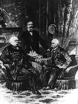 During the autumn of 1877, as President of the Chamber, he went to London, Paris and Berlin on a confidential mission, establishing cordial personal relationships with British prime minister William Ewart Gladstone and Foreign Minister Lord Granville and other English statesmen, and with Otto von Bismarck, by then Chancellor of the German Empire.[34] In 1877 during the Great Eastern Crisis Crispi was offered Albania as possible compensation by Bismarck and the British Earl of Derby if Austria-Hungary annexed Bosnia, however, he refused and preferred the Italian Alpine regions under Austro-Hungarian rule.[35]